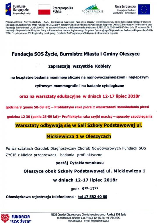 Bezpłatne badania mammograficzne i cytologiczne