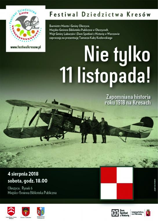 Miejsko- Gminna Biblioteka Publiczna w Oleszycach przygotowała w ubiegłą sobotę spotkanie z Tomaszem Kubą Kozłowskim, miłośnikiem i pasjonatem Kresów, autorem programu Warszawska Inicjatywa Kresowa w Domu Spotkań z Historią. które zatytułowano: ,,Nie tylko 11. listopada. Zapomniana historia roku 1918 na Kresach" Prelekcja skądinąd znanego nam już gościa przedstawiała wydarzenia, które toczyły się w 1918 roku na Kresach. Przypomniane zostały nieznane, zapomniane, a nierzadko specjalnie pomijane fakty, dotyczące odzyskania przez Polskę niepodległości. Powtórzmy krótko: ziemie Polaków znajdowały się pod okupacją Niemców, Austro-Węgier i Rosjan, co sprawiło, że walczyli oni po trzech stronach konfliktu- nierzadko przeciw sobie. Zdarzało się też, że rodzeni bracia byli dla siebie politycznymi wrogami (np. Stanisław Narutowicz, brat Gabriela Narutowicza, prezydenta Rzeczypospolitej był litewskim działaczem politycznym, sygnatariuszem aktu niepodległości Litwy). Największe miasta kresowe np. Wilno czy Lwów zamieszkiwali głównie Polacy, liczną grupę mieszkańców stanowili tam Żydzi, a najmniejsze grupy etniczne tworzyli autochtoniczni narodowcy.