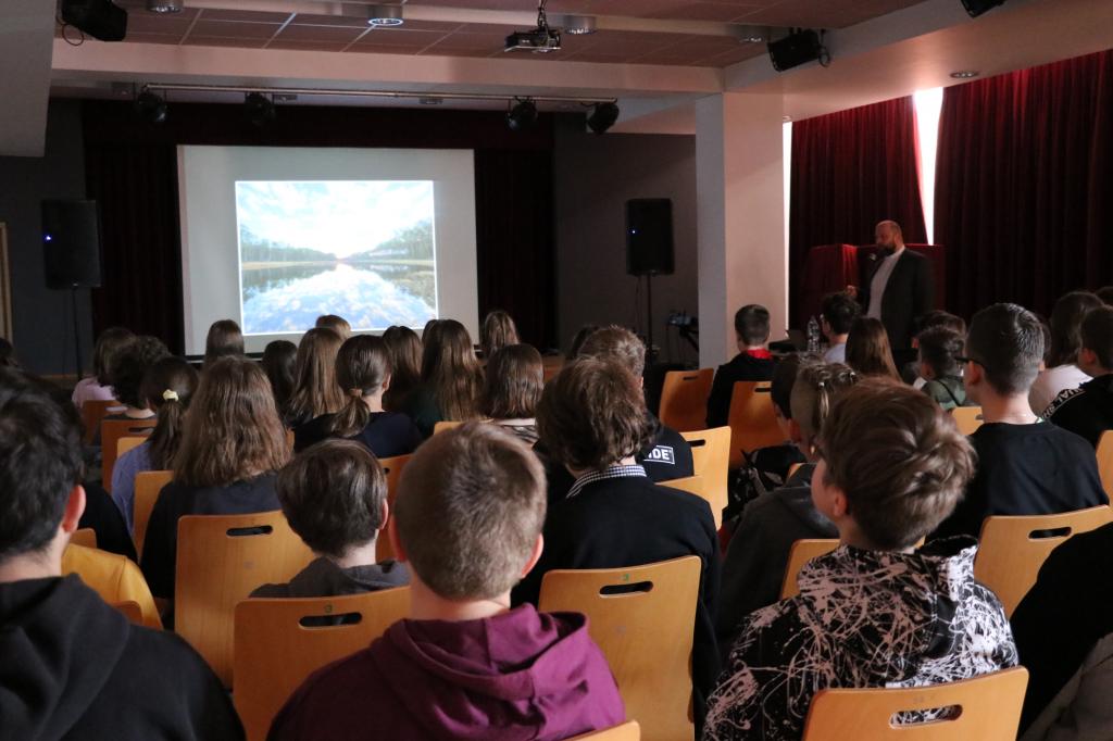 Odbyło się ono 10 maja i było jednocześnie specyficznym finisażem wystawy. Licznie zgromadzona młodzież z klas 6. i 7. Szkoły Podstawowej im. Jana Pawła II w Oleszycach spotkała się z Ks. Arturem Schodzińskim, który opowiadał o swojej pasji, podróżach oraz o tym jak robić dobre zdjęcie. W swojej gawędzie zwrócił uwagę na fakt, że dobre zdjęcie może powstać bez udziału drogiego sprzętu fotograficznego, musi być jednak przemyślane i zaplanowane. W przygotowanej przez Księdza Proboszcza prezentacji młodzież mogła zobaczyć kadry ukazujące piękno naszego regionu, ale także te z najdalszych zakątków świata m.in Kuby, Maroko, czy Argentyny. Nie zabrakło ciekawostek fotograficznych takich jak efekt malowania światłem lub jak „złapać” na zdjęciu błyskawicę. Na zakończenie spotkania ze strony młodzieży padło kilka trafnych pytań nawiązujących do tematu prelekcji.