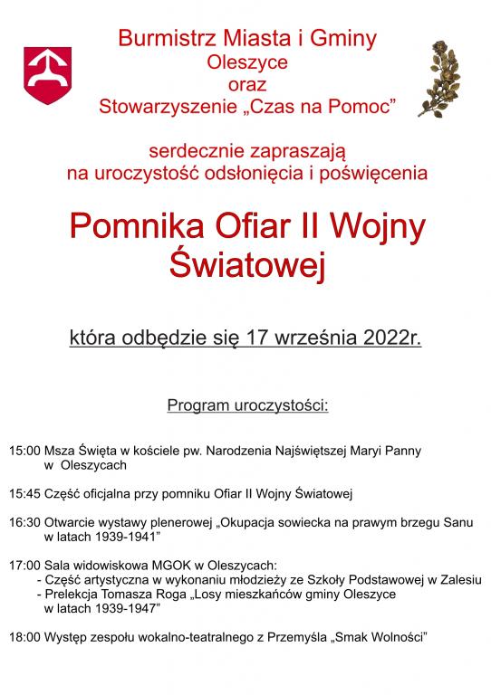 Uroczystość odsłonięcia i poświęcenia Pomnika Ofiar II Wojny Światowej