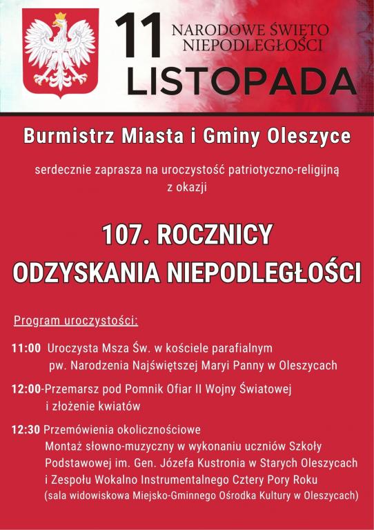 107. rocznica Odzyskania Niepodległości przez Polskę