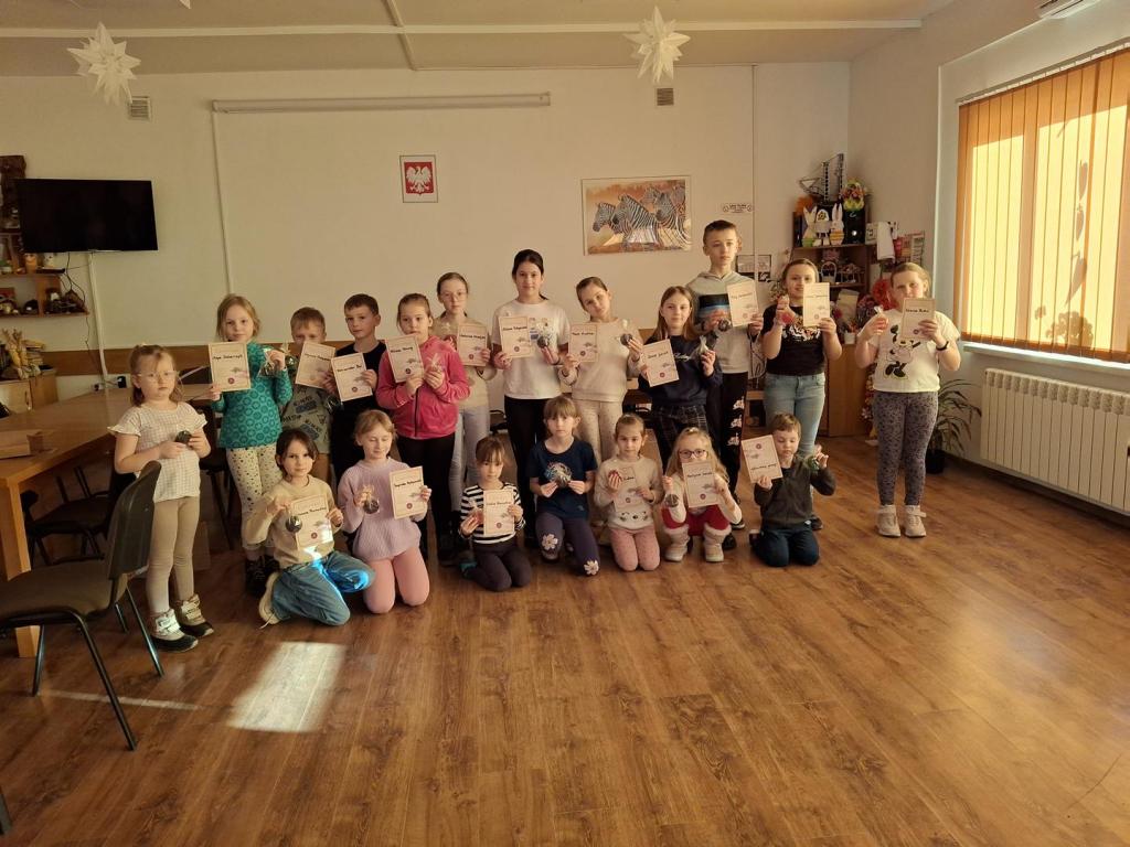 Obrazek Ferie zimowe to wymarzony czas dla dzieci. Jak co roku nasza placówka zorganizowała wiele ciekawych zajęć, które rozpoczęły się już 18 lutego we wtorek. W pierwszym tygodniu ferii uczestnicy robili z papierowej wikliny koszyczki pod nadzorem zaproszonej na zajęcia pani Barbary Żuk. Malowali obrazki solą, robili ciekawe figurki z plasteliny. Miłym zaskoczeniem było zrobienie przez każdego uczestnika  własnego mydełka zapachowego i otrzymanie certyfikatu warsztatowego. Drugi tydzień ferii rozpoczęliśmy zabawą karnawałową z poczęstunkiem. Ciekawym wydarzeniem w środowe popołudnie było spotkanie z panią Niną Hamułką Starszym Specjalistą ds. zagospodarowania lasu, która pięknie opowiadała jak mądrze dokarmiać ptaki, jak rozpoznać ptaki po głosie. Pokazała jak można pomysłowo zrobić karmnik dla ptaszków, każdy uczestnik zajęć mógł  zabrać ze sobą do domu swój własny karmnik. W tłusty czwartek dzieci przy udziale Koła Gospodyń Wiejskich w Futorach mogły zobaczyć w jaki sposób powstaje ciasto na faworki, spróbować samemu uformować faworka jak i też zasmakować. Podczas zajęć odbywały się zabawy ruchowe, gry stolikowe i planszowe. więcej