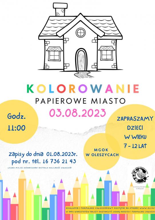 - Kolorowanie "papierowe miasto" (dzieci w wieku 7-12 lat) - 03.08.2023r. więcej