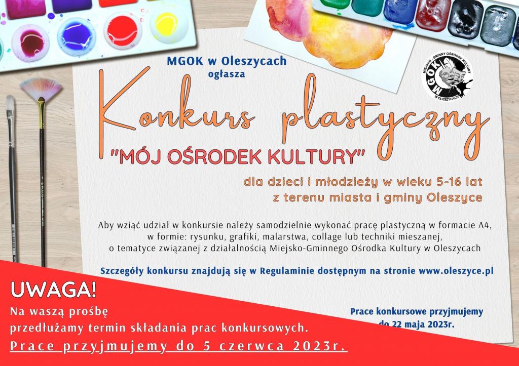 więcejPrace należy złożyć wraz z wypełnioną kartą zgłoszenia i zgodę na przetwarzania danych osobowych w sekretariacie MGOK w Oleszycach do dnia 22 maja 2023 roku. więcej
