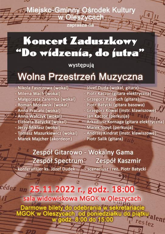 Darmowe bilety są do odebrania w sekretariacie MGOK w Oleszycach, od poniedziałku do piątku w godz. 8:00-15:00.