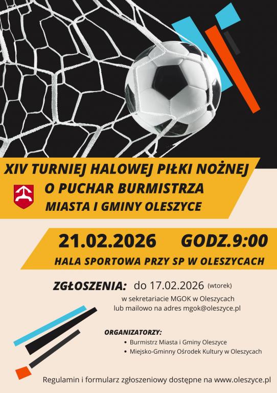 Burmistrz Miasta i Gminy Oleszyce oraz Miejsko-Gminny Ośrodek Kultury w Oleszycach zapraszają do udziału w Turnieju Piłki Siatkowej. Wydarzenie odbędzie się 7 marca 2026 roku o godzinie 10:00 w Hali Sportowo-Widowiskowej przy Szkole Podstawowej im. Jana Pawła II w Oleszycach.