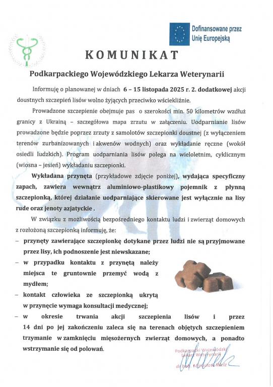 Obrazek Podkarpacki Wojewódzki Lekarz Weterynarii informuje o planowanej od 6 do 15 listopada br. 2. dodatkowej akcji szczepień lisów wolno żyjących przeciwko wściekliźnie. więcej
