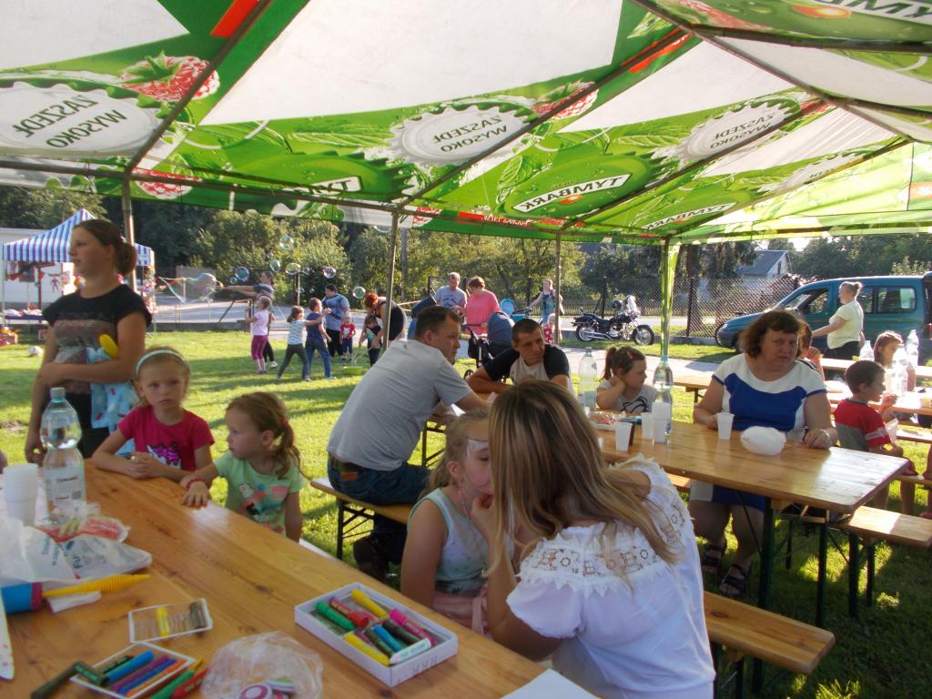 Najmłodsi brali udział w konkursie plastycznym, chętnie uczestniczyli w zabawach z chustą animacyjną oraz w tworzeniu baniek mydlanych. Niecodzienną, darmową atrakcją były dmuchane zjeżdżalnie, przejażdżka bryczką i motocyklem, malowanie twarzy, włosów oraz modelowanie balonów.