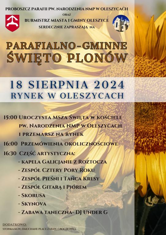 O godzinie 15:00 odbędzie się uroczysta Msza Święta w kościele Parafialnym Narodzenia NMP w Oleszycach, po której nastąpi przemarsz na Rynek.