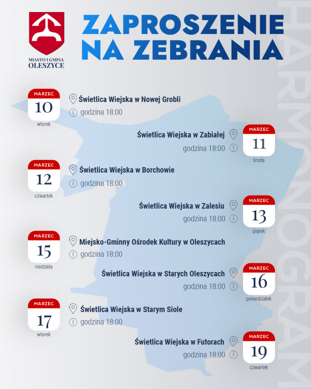 Zaproszenie na zebrania w Gminie Oleszyce