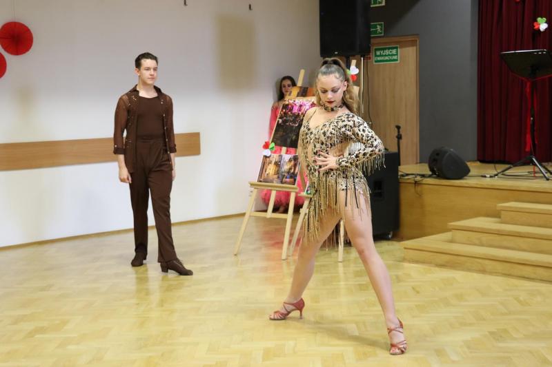 Jak karnawał, to taniec w najlepszym wydaniu. Gorącą atmosferę wieczoru dopełniły choreografie naszych tancerzy. Wspaniałe widowisko ukazało się naszym oczom, gdy na parkiecie pojawiły się zespoły taneczne: Czerwone Korale i Panie ze Szkoły Tańca „Fantazja”. I tak podziwialiśmy pełne ekspresji układy taneczne- „Matulu” w wykonaniu młodzieżowej grupy tanecznej Czerwone Korale oraz energetyczny zestaw tańców „latino”- w dwóch wejściach Pań ze Szkoły Tańca „Fantazja”. Był to pokaz prawdziwego kunsztu tanecznego w wykonaniu wszystkich tancerzy. Wrażenia wizualne, zachwyt potęgowały ich przepiękne stroje. O wszystko zadbała i czuwała nad wykonaniem jak zawsze Pani Monika Jezuit, której przekazujemy najwyższe słowa uznania, wyrażane także w spontanicznych owacjach publiczności. Dodatkowo Panie ze Szkoły Tańca „Fantazja” włączyły się z tańcząc do piosenek wykonywanych przez Zespół wraz z osobami spośród publiczności- zabawa była przednia. „Honey, Honey- możesz być królową, możesz zostać królem”- dosyć wymowny tytuł koncertu stał się inspiracją do tego, by wybrać Królową i Króla Wieczoru. Zostali nimi Nikola i Henryk- oboje otrzymali złote korony. Natomiast publiczność za wspaniałe zaangażowanie i udział w koncercie w nagrodę delektowała się walentynkowymi ciasteczkami i czekoladkami w kształcie serduszek.