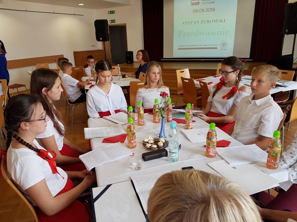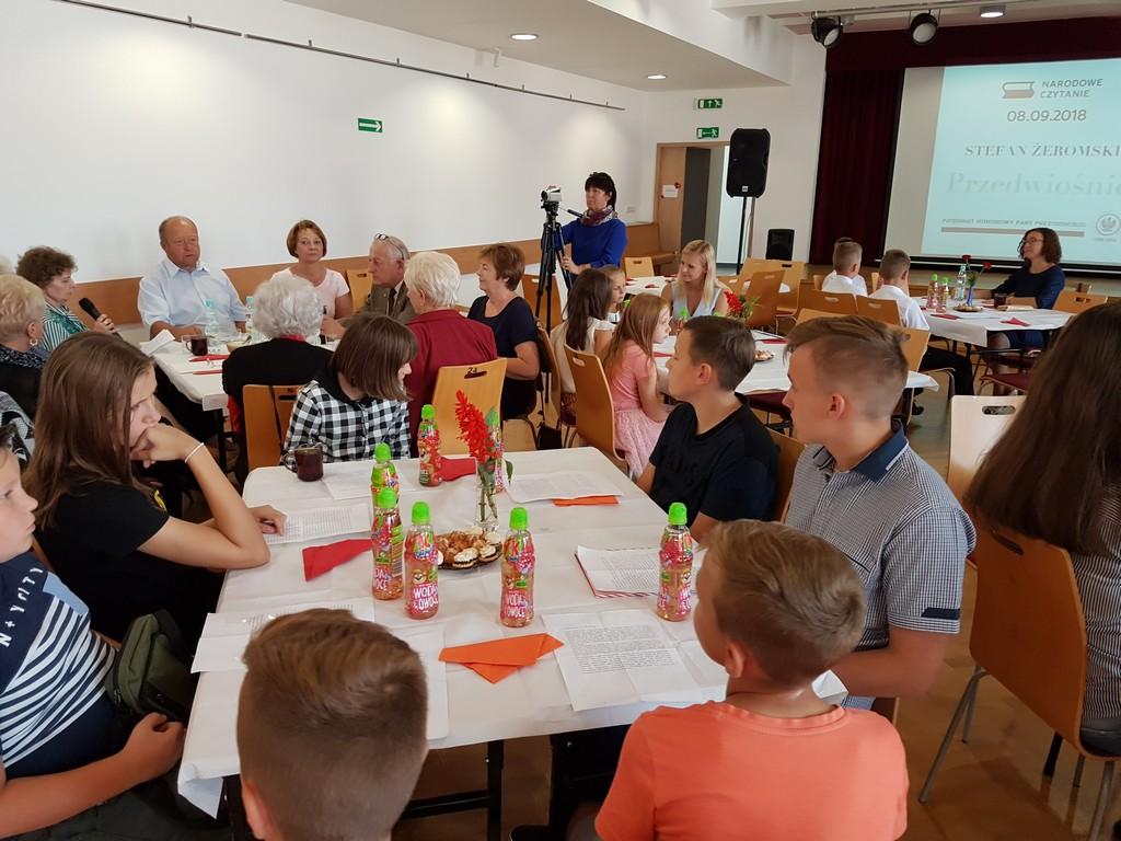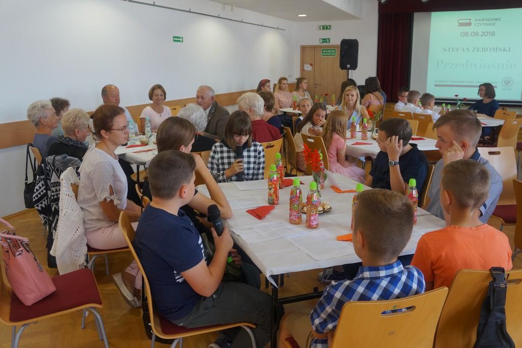 Zapowiadane opady deszczu zmusiły czytających do wejścia pod dach, Narodowe Czytanie Przedwiośnia odbyło sie w sali na I piętrze MGOK w Oleszycach. Było narodowo, patriotycznie i muzycznie. Dołączyliśmy do trzech tysięcy innych miejsc, które w tym dniu połączyła lektura.
