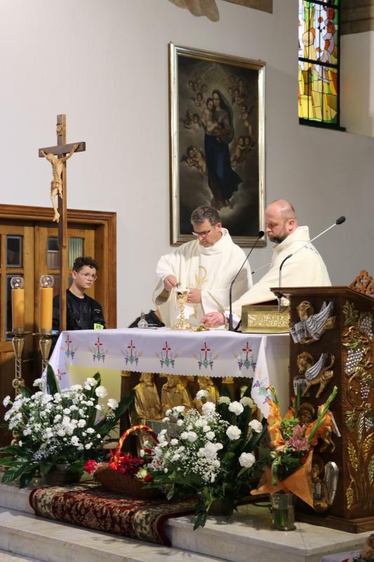 z proboszczem trzej wikariusze, ksiądz emeryt i 3 siostry Felicjanki. W niedziele